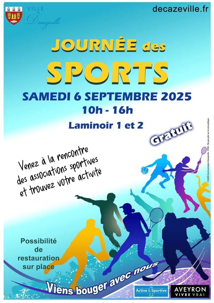 Le samedi 6 Septembre se tiendra la journée des sports au Laminoir 1 et 2 de Decazeville entre 10h et 16h.