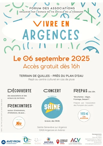 Le samedi 6 septembre, dès 16h, se déroulera le forum des associations d’Argence en Aubrac, lors de laquelle sont prévues des rencontres autour d’animations, d’initiations et de jeux.